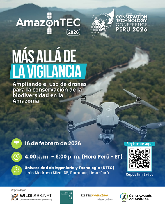 En el marco de la primera Conferencia Internacional sobre Tecnologías para la Conservación (ICTC 2026) a realizarse en el mes de febrero, se realizará la primera sesión del AmazonTEC2026 denominada “Más allá de la vigilancia: ampliando el uso de drones para la conservación de la biodiversidad en la Amazonía”.